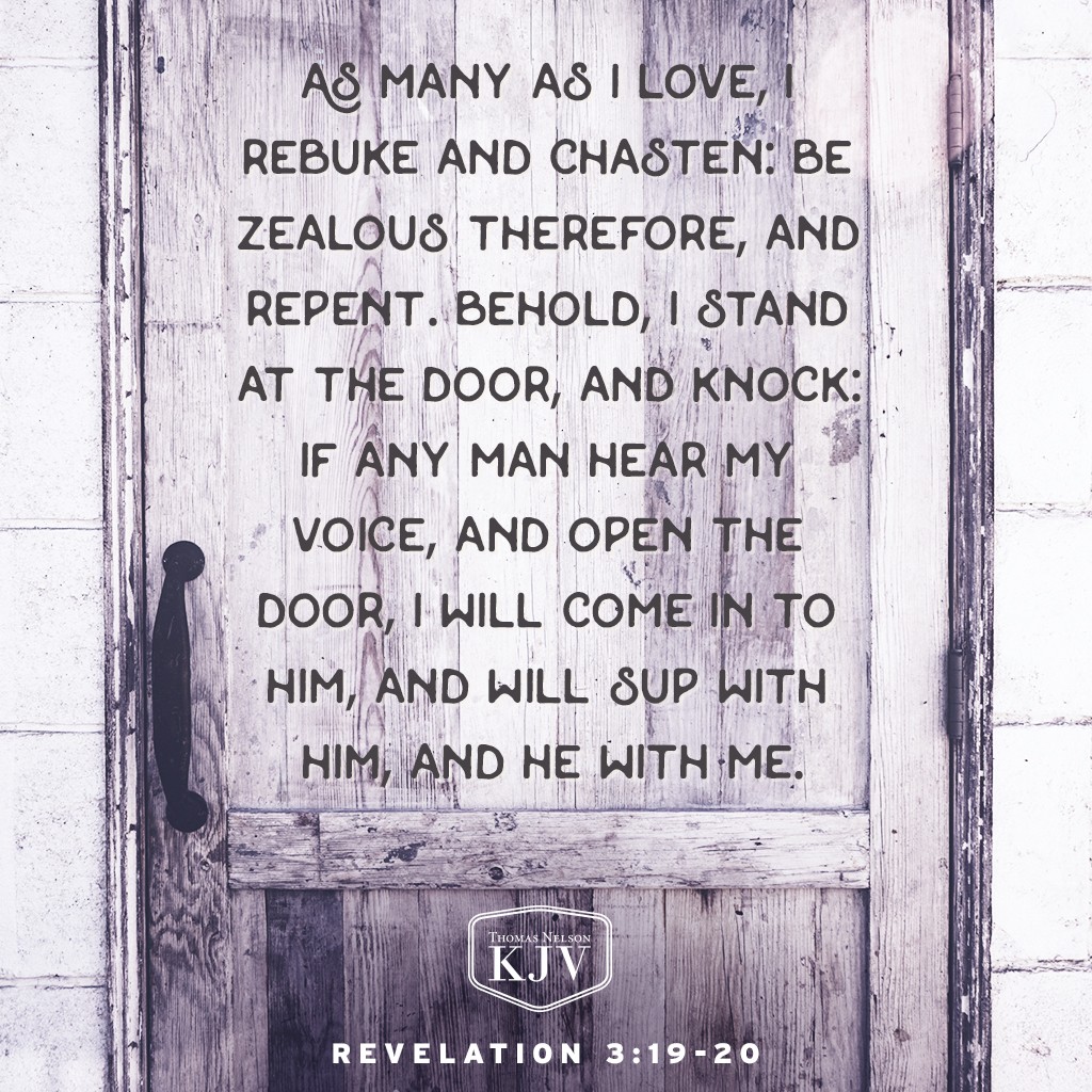 20 Behold, I stand at the door, and knock: if any man hear my voice, and open the door, I will come in to him, and will sup with him, and he with me. Revelation 3:14-20